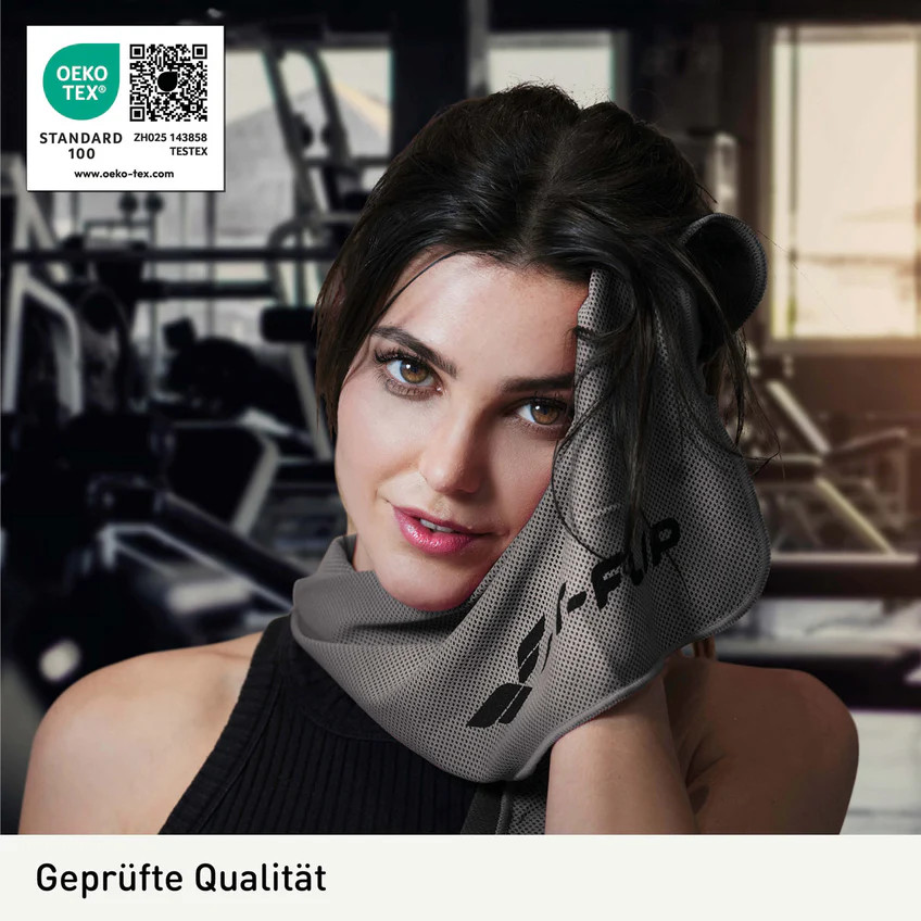 Wir verwenden ein spezielles Stoffgemisch aus Polyamiden und Polyester. Unsere Microfaser Handtücher fühlen sich dadurch sehr weich an und haben einen besseren Kühleffekt. Es ist darauf zu achten aus welchem Material die Handtücher hergestellt wurden. Kühlende Mikrofaser Sporthandtücher aus 100% Polyester, welche oft angeboten werden, sind nicht ideal.